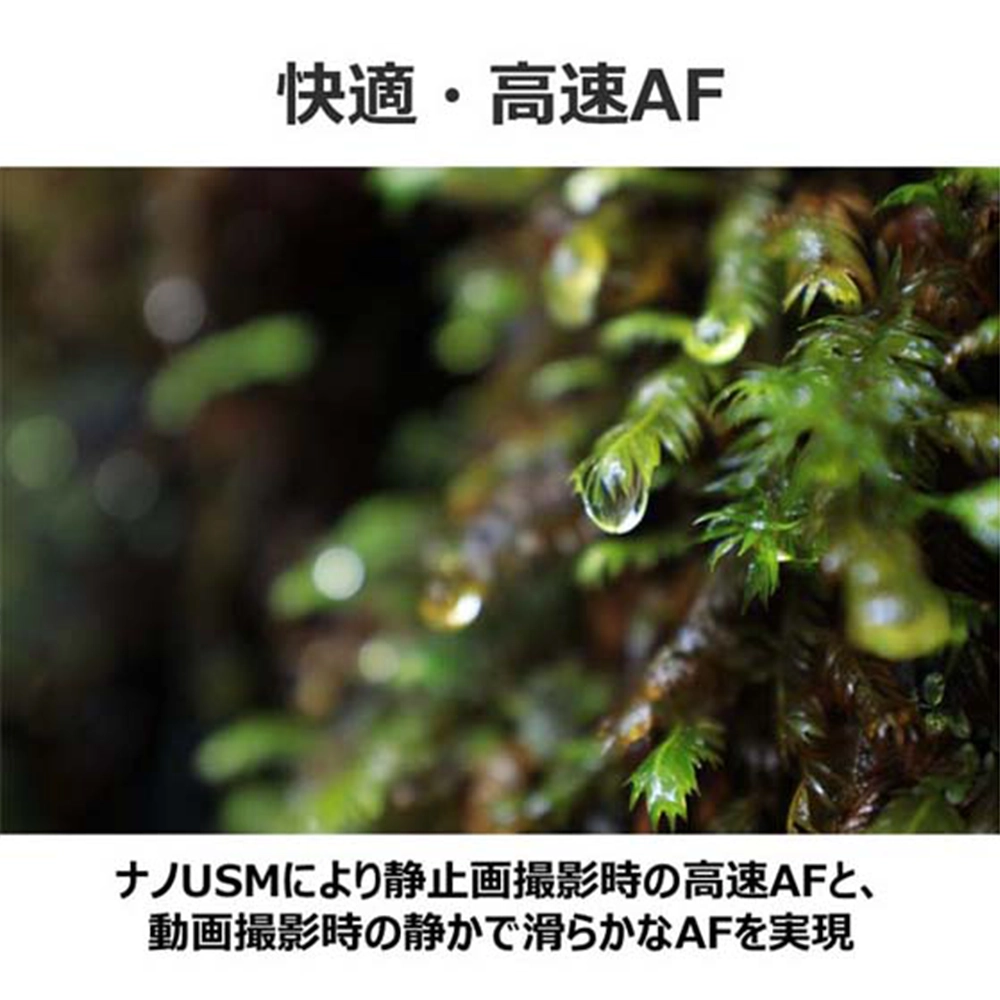 RFマウントの大口径・ショートバックフォーカスを生かした小型・軽量設計により、全長約99.8mm、質量約540gの優れた携帯性を実現。