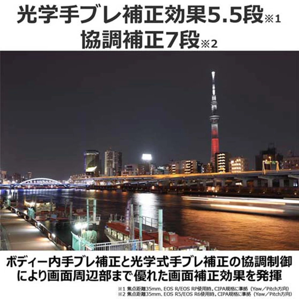 ※1 焦点距離35mm、EOS R使用時。CIPA規格に準拠(Yaw/Pitch方向)。