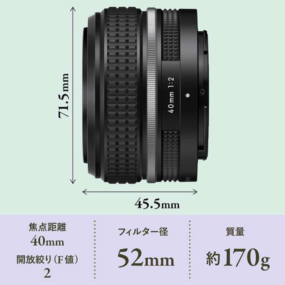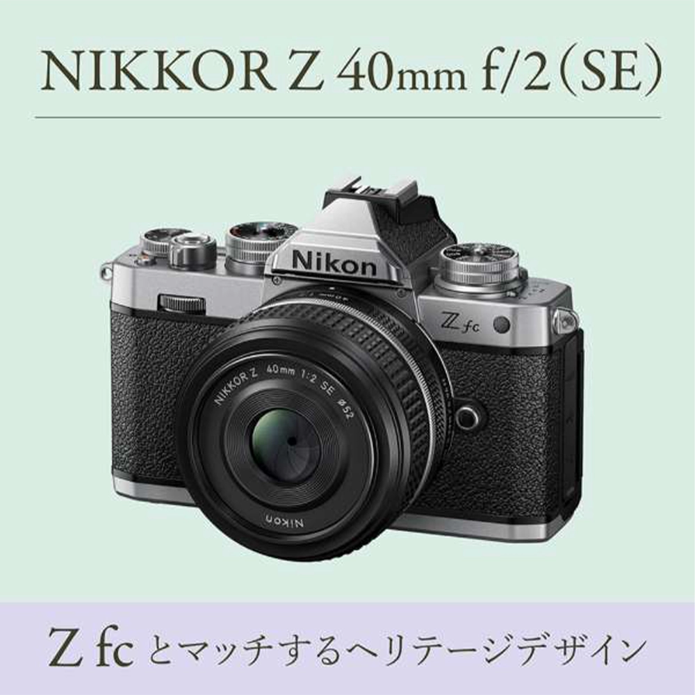 NIKKOR Z レンズの中でも個性的で目をひくデザインのNIKKOR Z 40mm f/2(SE)は、フィルム一眼レフカメラ「ニコン FM2」の雰囲気をまとうミラーレスカメラ「Zfc」※にぴったりのSpecial Edition(SE)レンズです。