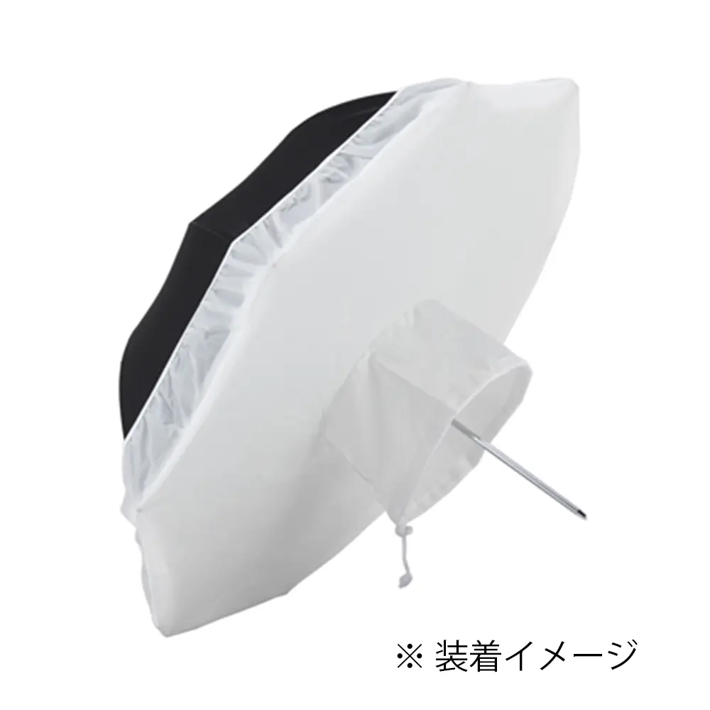 Φ85cm程度のアンブレラに使えるディフューザーです。よりソフトなライティング効果が得られます。ストロボやLEDなどのリフレクターの上からかぶせて使用します。ディフューザーの端にはゴムが縫い付けてあり、簡単に着脱が可能です。
