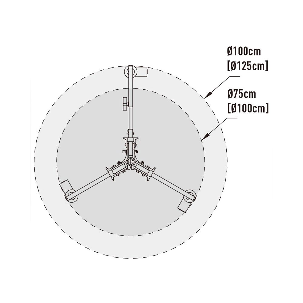 - スタンドアームの片側に過度な負荷をかけると転倒しやすくなりますが、重いライトを片側にかける場合でも片方の脚が伸びてスタンドが転倒を防止。