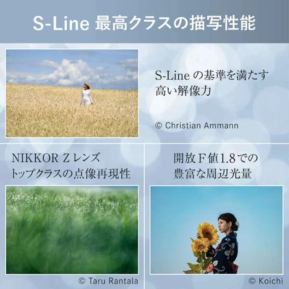 Z マウントのポテンシャルを最大限発揮して、S-Lineレンズ屈指の解像度を達成。撮影距離を問わず、人物の肌や髪の繊細な質感も、克明に生き生きと描写します。また、絞り開放から実現した、画像周辺部までの高い点像再現性で、点光源の一つひとつを洗練された輝きに再現します。
