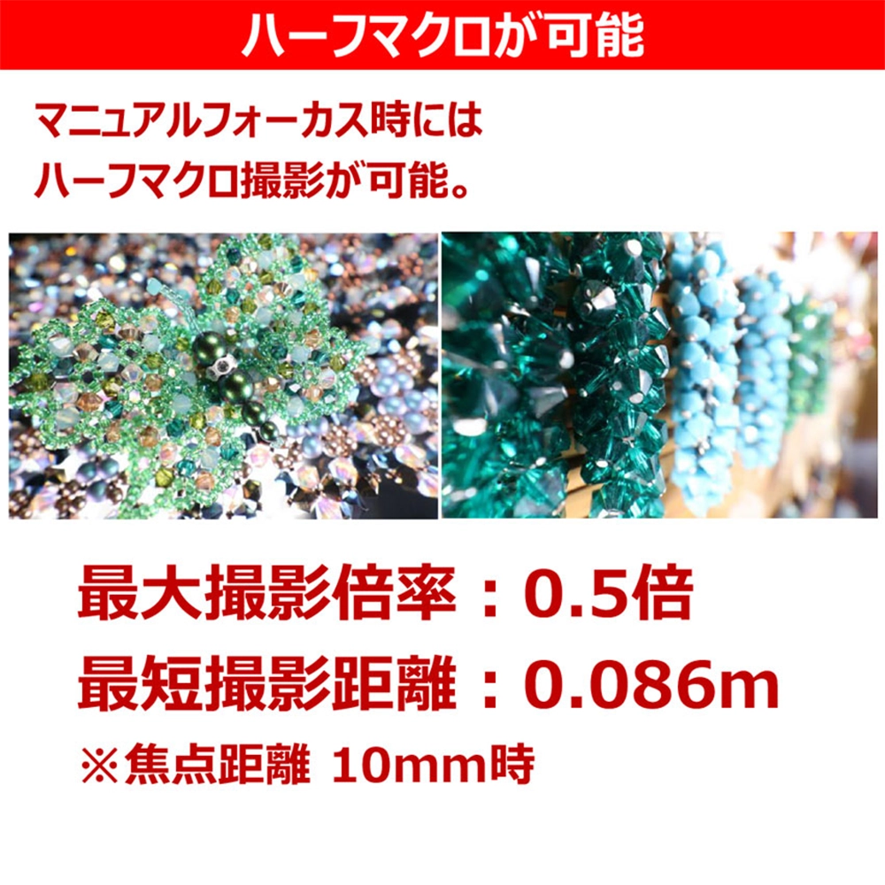 - AF時:0.23倍(18mm時) 、MF時:0.5倍(10mm時)