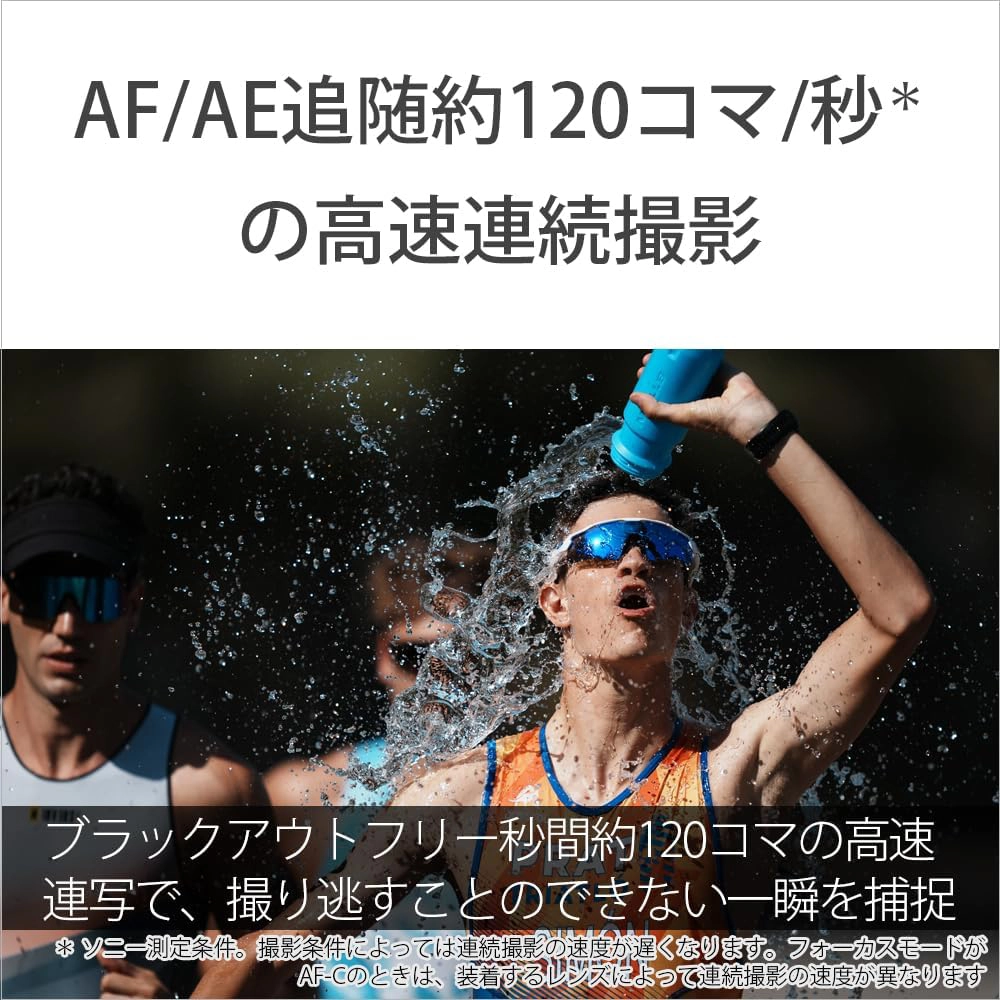 有効約2460万画素メモリー内蔵フルサイズ積層型CMOSイメージセンサーExmor RS(TM)(エクスモア アールエス)に、「グローバルシャッター方式」を採用。全画素を同時に露光、読み出しを行うので、高速で動く被写体を捉える場合でも、ローリングシャッター方式では発生してしまう画像の歪みが発生せず、肉眼で見た形状のままに撮影が可能です
