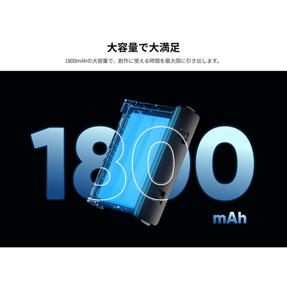 1800mAhの大容量で、創作に使える時間を最大限に引き出します。