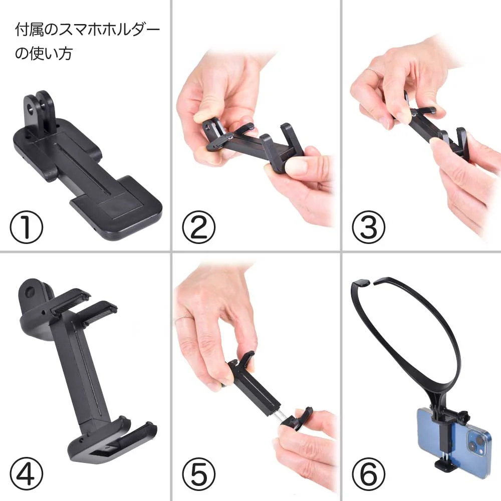 ・両手がフリーになるので、手元動画の作成や街歩きなど、目線に近い動画がとれ、カメラマイクが口元に近くなるので音声も入りやすく、脱着も簡単です。