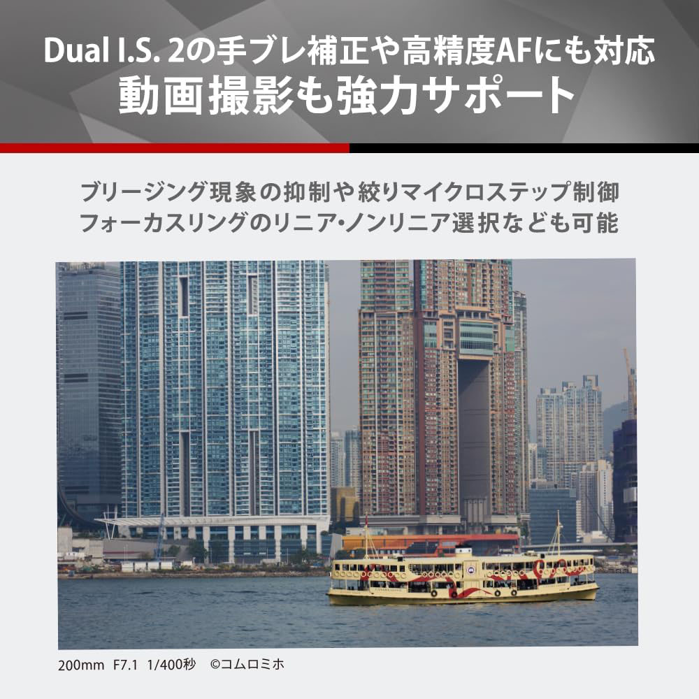 フォーカスリングにおいてリニア/ノンリニア設定の切り替えが可能で、ノンリニア方式ではフォーカスリング操作の回転速度に対して移動量可変でピントが移動し、俊敏なフォーカス合わせが可能。リニア方式ではフォーカスリングの回転量に対して移動量固定でピント移動し、さらに撮影シーンに応じて回転量の設定も可能で、動画撮影時に撮影者の意図に沿った、メカニカルのような直感的で精緻なフォーカシングが可能です。MFリングの検出と制御方法の改善により、微小なフォーカシングが必要なマクロ撮影においても精密な操作が可能です。