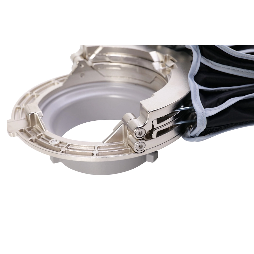 梱包時に円筒形を維持する従来のクイック ソフトボックスとは異なり、ライトドーム III のクイック セットアップスピードリングはスリムで平らな形状に折りたたみができます。