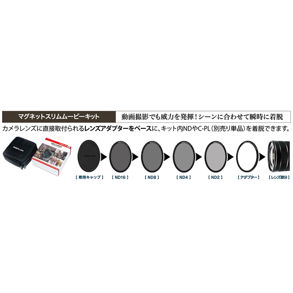 ※こちらのキットは「マグネットスリムレンズアダプター」がベースになっています。「マグネットベース付きレンズ取付け用スリムレンズ保護フィルター」をお求めの場合は別売の単品商品をお買い求め下さい。