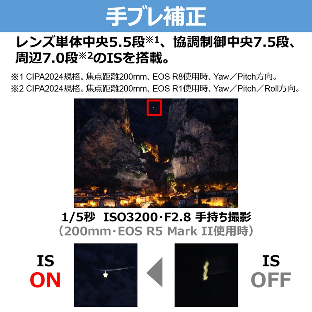 ※2 CIPA2024規格。焦点距離200mm、EOS R1使用時、Yaw/Pitch/Roll方向。