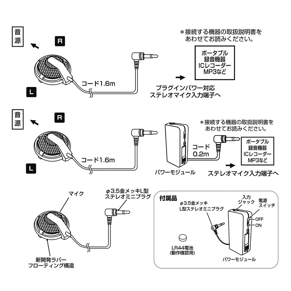 ※プラグインパワー方式は接続する機器のマイク端子からマイクに電源が供給されて動作します。